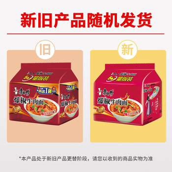康师傅 方便面 经典爆椒牛肉面五连包103g*5 泡面袋装速食 方便食品