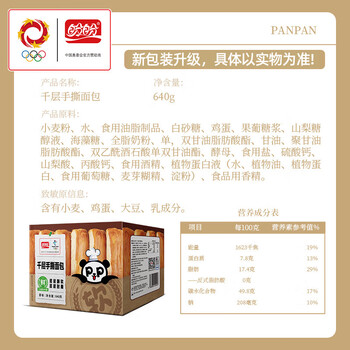 盼盼 手撕千层枕面包640g 早餐点心休闲零食营养代餐充饥宵夜