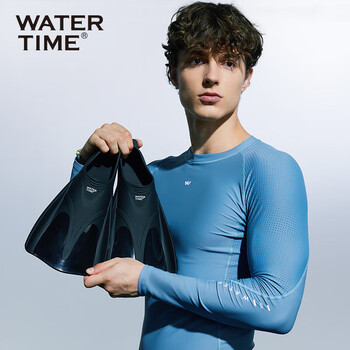 WATERTIME/水川 游泳脚蹼训练短脚蹼浮潜自由泳成人儿童专业游泳装备黑色S