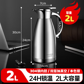 美厨(maxcook)保温壶 304不锈钢真空热开水瓶暖壶家用咖啡壶大容量2L本色MCB393