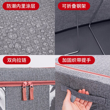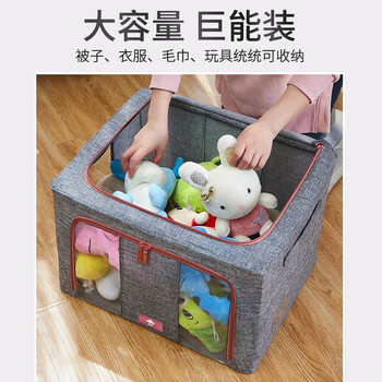 山山 衣服玩具被子大容量收纳箱三视窗加粗钢架可折叠棉麻整理箱66升