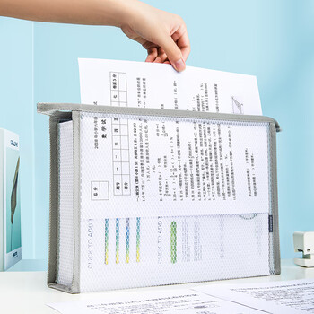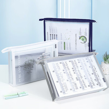 金得利A4透明文件袋拉链档案袋资料袋科目分类袋作业收纳袋手提小学生书袋办公用品补习袋考试袋灰FB8726