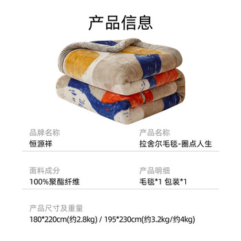 恒源祥拉舍尔毛毯-圈点人生180*220cm2.8千克