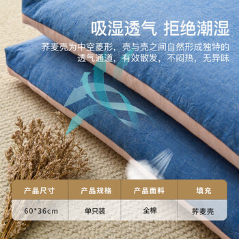 雅鹿·自由自在 纯棉100%荞麦壳荞麦皮枕头枕芯全棉安睡枕头60*36cm单只装 粉蓝