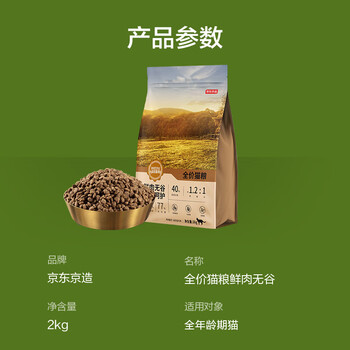 京东京造猫粮全价无谷鲜鸡肉低敏猫粮2kg单一肉源成猫幼猫通用