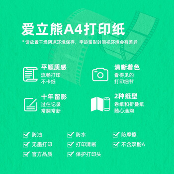 爱立熊A4折叠纸 十年留影热敏打印纸 三防不含双酚A热敏纸高清照片打印纸 100张