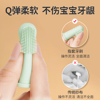 布朗博士硅胶指套牙刷 新生儿舌苔清洁器 3-12个月软感护龈清洁(透明色)