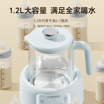 苏泊尔(SUPOR)恒温水壶 婴儿调奶器 泡奶粉机 玻璃热烧水壶家用养生壶1.2L BW07