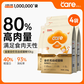 好主人(CARE)金装好主人猫粮无谷猫粮全价成猫通用80%含肉量10kg【宠物金选】