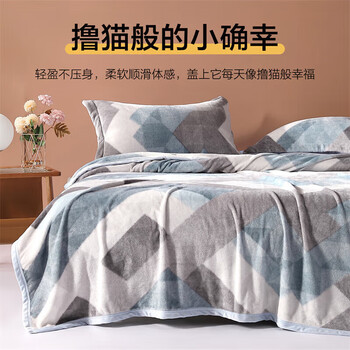 水星家纺毛毯法兰绒毯冬季毛巾被保暖毯子床盖毯可机洗约2.3斤180×200cm