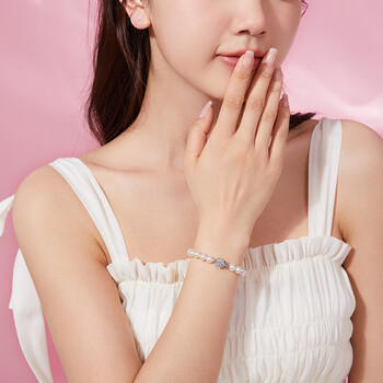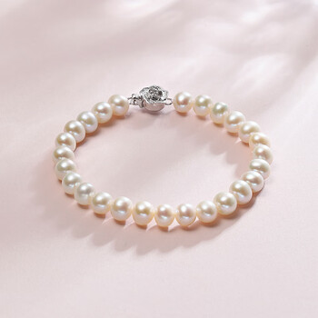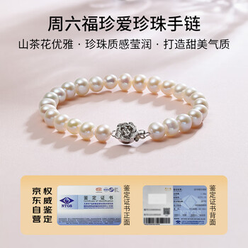 周六福银扣山茶花珍珠手链手串生日礼物 椭圆形约6.3mm 手链 16cm