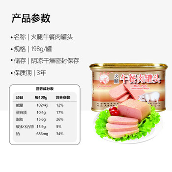 长城牌 午餐肉罐头198g 火腿猪肉 速食火锅烧烤炒饭泡面搭档中华老字号