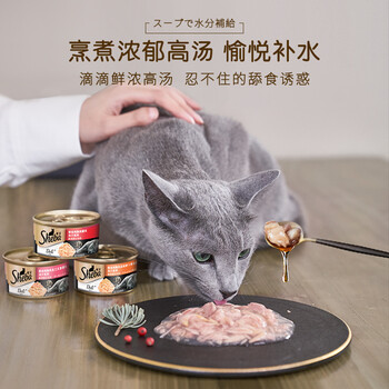 宠物生活---猫食品---猫零食---猫零食罐头希宝(Sheba)希宝 猫罐头 鸡胸肉及三文鱼85g*24罐 海鲜汤汁系列进口猫粮猫湿粮整箱装