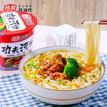 陈村 功夫河粉 红烧排骨味 90g*12桶 广东扁薄滑宽粉粿条代餐夜宵速食