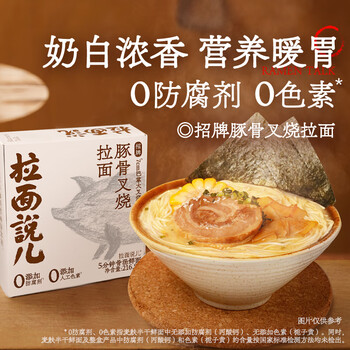 拉面说儿招牌豚骨叉烧拉面非油炸方便面夜宵早餐速食懒人拉面216.8g/盒