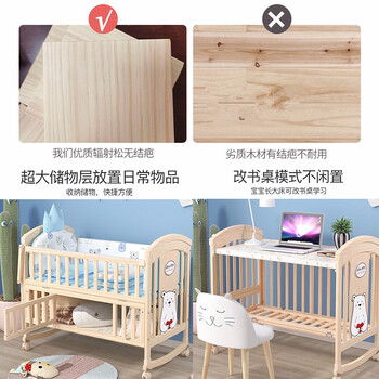 ANGI BABY婴儿床实木无漆多功能宝宝床新生儿可移动摇床可拼接加长儿童床