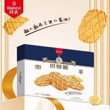 丹夫华夫饼巴特脆66g/盒儿童休闲零食午茶点心进口黄油曲奇薄脆饼干