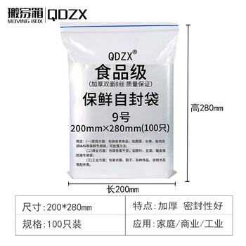 QDZX9号 20*28cm100只自封袋封口袋食品袋保鲜袋PE袋密封袋压缩袋