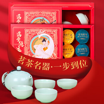 润虎红茶金骏眉浓香铁观音乌龙茶大红袍66g配茶具茶叶礼盒送长辈