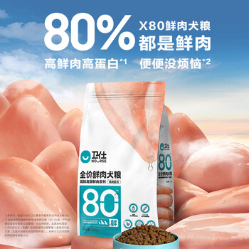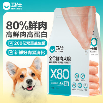 卫仕(NOURSE)X80高鲜肉犬粮 狗干粮 全价全阶段狗粮 鲜鸡肉高蛋白 1.5kg*1袋