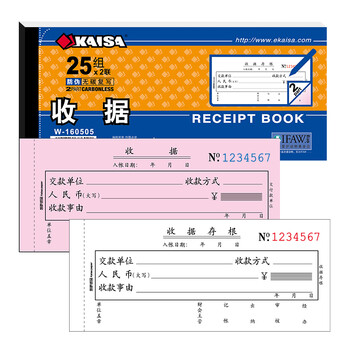 凯萨(KAISA)60K/二联收据 两联25组财务现金收款收据单栏票据财会用品(173*75mm) 10本装 W160505