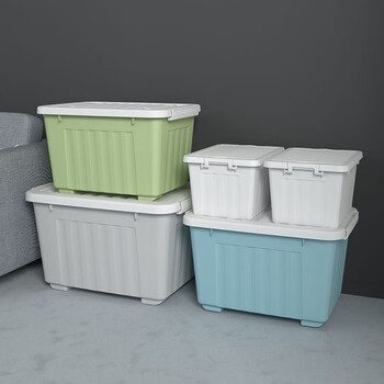SPACEXPERT 衣物收纳箱特大号塑料整理箱车载储物箱36L绿色 1个装 带轮