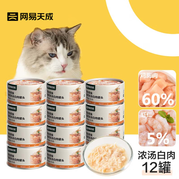 宠物生活---宠物零食---猫零食---湿粮罐头网易严选宠物零食猫用浓汤白肉罐头 鸡丝虾仁口味85克*12罐
