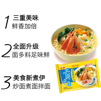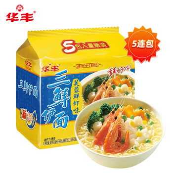 华丰方便面三鲜伊面五连包泡面早餐速食休闲零食品 芙蓉鲜虾味5包*86g