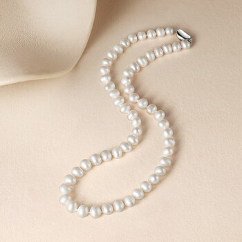 周六福S925银扣淡水珍珠项链妈妈生日礼物 扁圆7.5-8.5mm 45cm