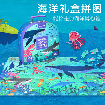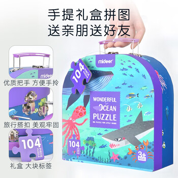 弥鹿(MiDeer)玩具拼图宝宝玩具男女孩礼物3-6岁手提盒拼图-海洋104PCS新年礼物