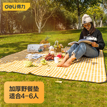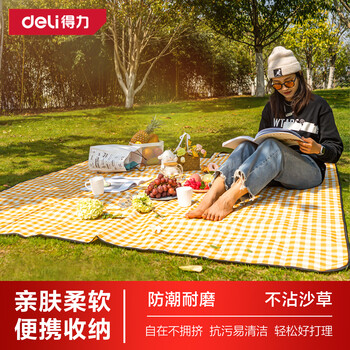 得力(deli) 野餐垫户外加厚防潮垫牛津布便携帐篷垫子沙滩垫 防水黄白格中号