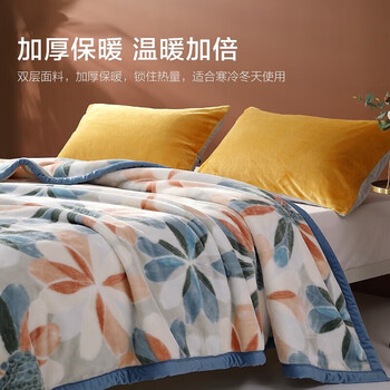 水星家纺毛毯冬季加厚加绒拉舍尔毯子双层铺床盖毯可机洗约7.2斤200×230cm