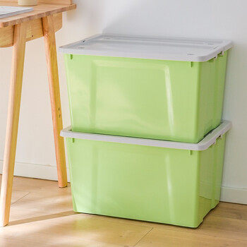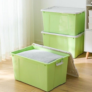 清野の木 衣物收纳箱特大号塑料整理箱56L绿色 1个装 带轮