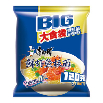 康师傅 方便面 大食袋鲜虾鱼板 泡面袋装速食 五连包 1包