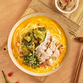青梗菜、芝麻、卷卷肥牛、泡椒鲜笋、酸爽金汤、麦麸刀切面