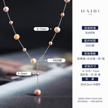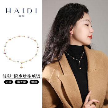 海蒂S925银4-7mm混彩色无核满天星淡水珍珠项链女送女友礼物附证书