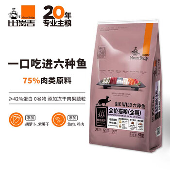比瑞吉猫粮 全期全价 无谷六种鱼 自然粮 猫粮 8KG