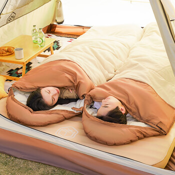 京东京造 信封式睡袋成年人四季通用户外露营冬季加厚防寒保暖浅沙色1.8kg