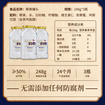 真心椰果罐头248g*3罐 水果罐头糖水饮料水果捞休闲礼盒送礼