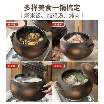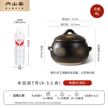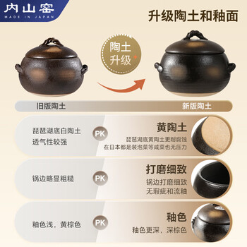 内山窯日本进口家用砂锅煲汤锅大容量陶瓷煲耐高温不开裂燃气灶炖锅4L