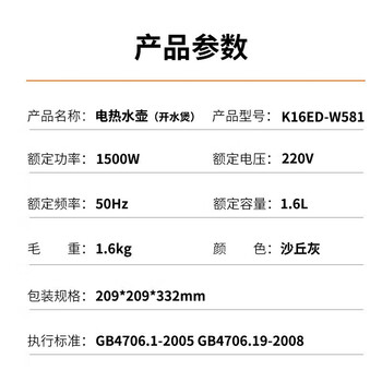 九阳(Joyoung)电水壶/热水瓶 太空科技电热水壶恒温水壶1.6L保温开水壶煮水壶大屏数显除氯 K16ED-W581