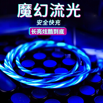 迪加伦 创意 流光手机快充USB数据线 发光跑马灯 oppo 三星 VIVO 华为P30 充电线器 新安卓Type-c专用-蓝光