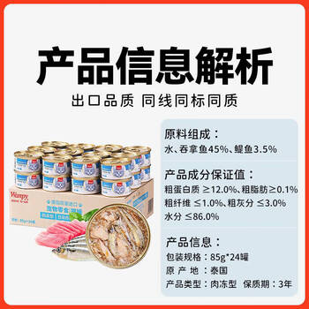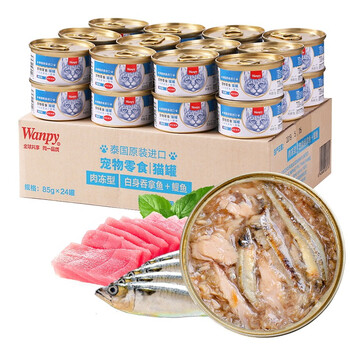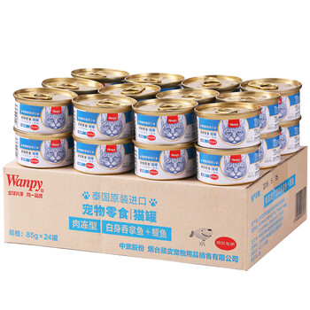 顽皮(Wanpy)泰国进口 猫罐头85g*24罐 白身吞拿鱼+鳀鱼罐头(肉冻型) 成猫零食