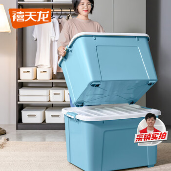 禧天龙塑料收纳箱钢化升级款储物箱抗压衣物车载整理箱 80L石青1个装