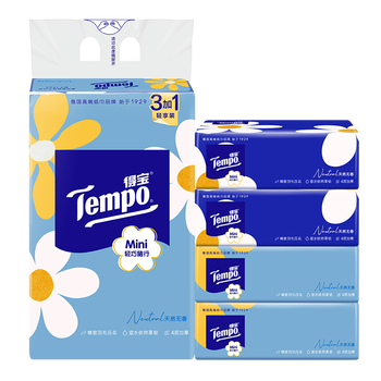得宝(Tempo) Mini系列抽纸 4层80抽面巾纸*4包纸巾 天然无香