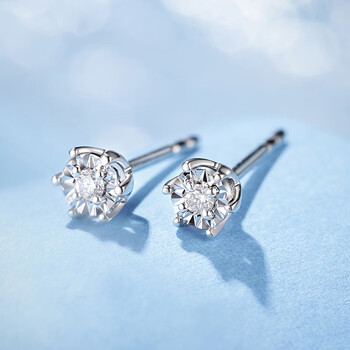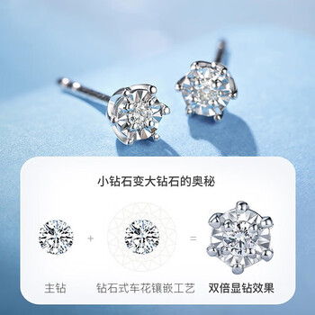 喜钻生日礼物30分效果18K金钻石耳钉女送女友 白18K金