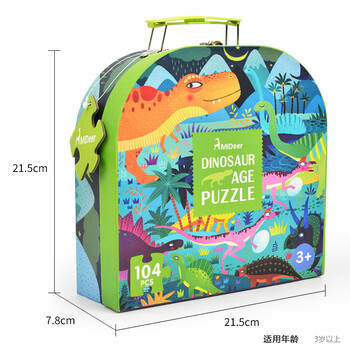 弥鹿(MiDeer)玩具拼图认知拼图玩具男女孩礼物4-6岁手提盒-恐龙104PCS儿童礼物
