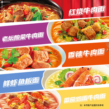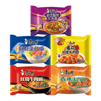 康师傅方便面 经典红烧+香辣+鲜虾+酸菜+番茄104*25袋 泡面整箱速食组合