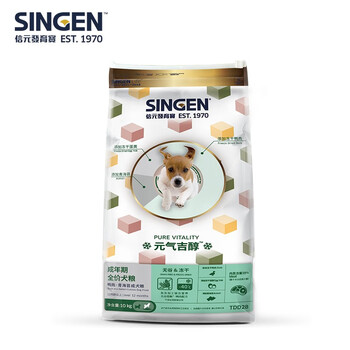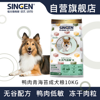 信元发育宝(SINGEN)元气吉醇鸭肉青海苔成犬粮10kg 低敏无谷冻干两拼大袋狗粮20斤