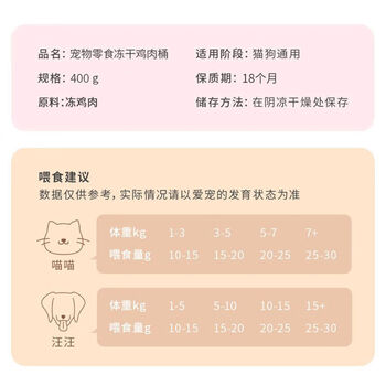 petofstory 宠物猫零食猫冻干桶400g 鸡肉猫咪狗零食大份幼小猫鸡肉拌饭主粮